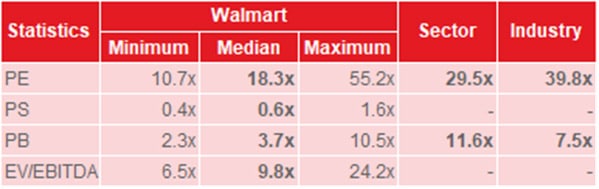 Walmart's stock is relatively undervalued at a P/E of 28.61. Global retail sales are expected to expand rapidly in the next few years. Thus, Walmart's competitive advantages should continue to benefit the company.