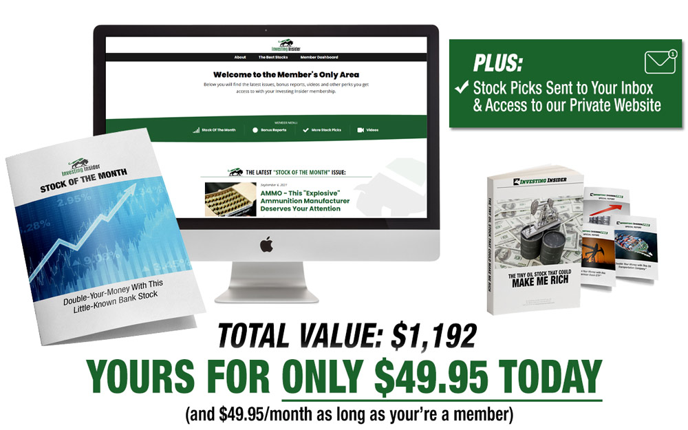 A membership to Investing Insider’s "Stock of the Month" Service, where we release one blockbuster stock a month (at a 50% discount of only $49.95 a month)